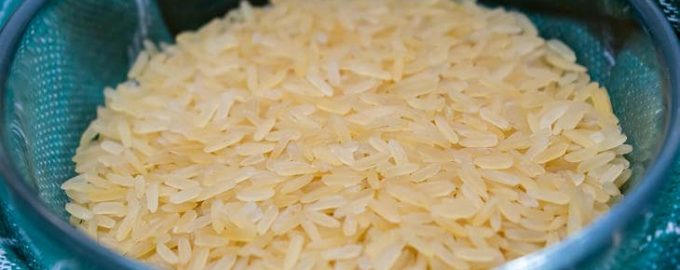 Viene lasciato in un setaccio per trenta o quaranta minuti in modo che l’umidità si distribuisca uniformemente all’interno di ogni chicco. Se si inizia subito a cuocere il riso bagnato, l’acqua bolle più velocemente di quanto abbia il tempo di penetrare nel nucleo e si ottiene un centro duro sotto il guscio cotto.